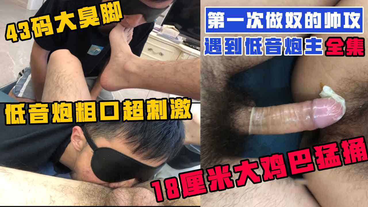 第一次做奴的帅攻遇到低音炮主,43码大臭脚超爽,还被大鸡吧操射