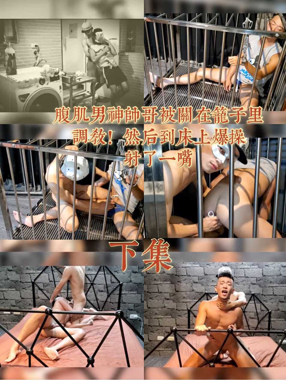 腹肌男帅哥被关在笼子里调教!然后走到床上爆肏射精一脸(下)