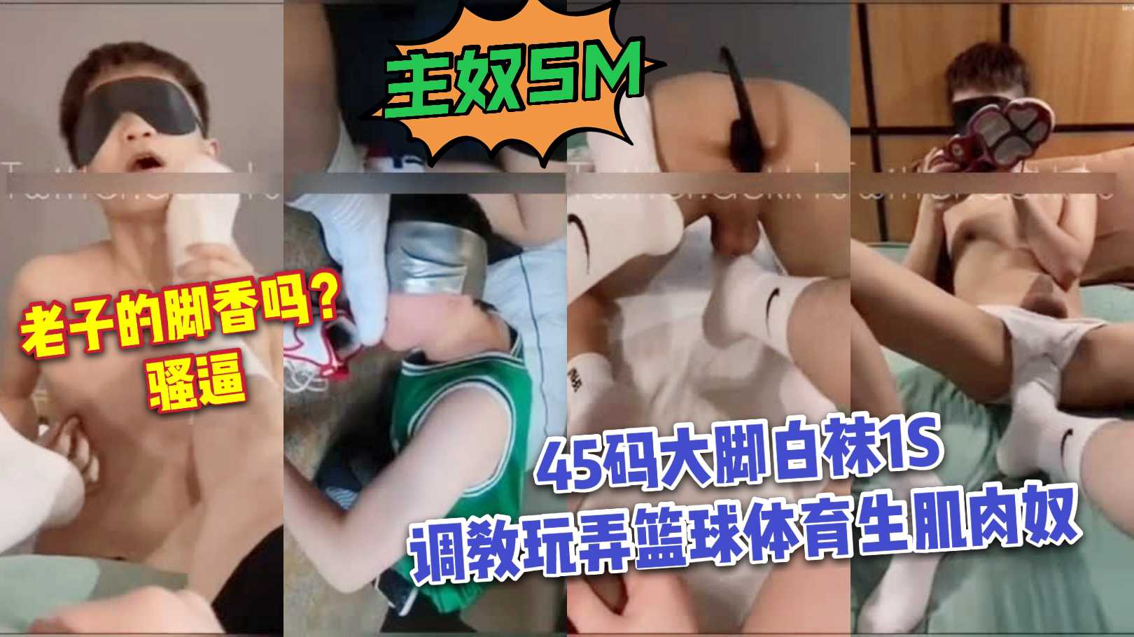 45码大脚白袜1S调教篮球体育生肌肉奴,踩脸舔脚再猛插,体育生爽到抖