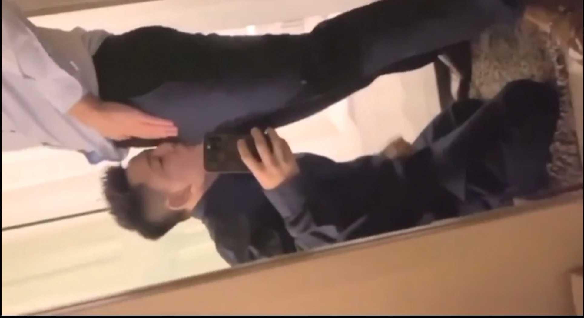 帅哥跪在地上扒开西装上司内裤吃肉棒!闻臭脚后被无套