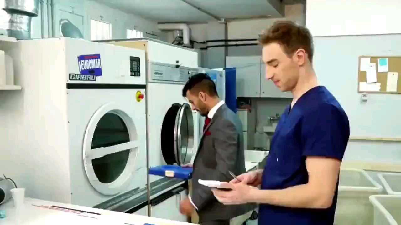 病人出院了,护士小哥去整理床铺,趁着病房没其他人,对病人下手了
