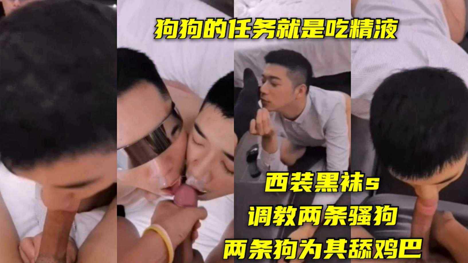 西装黑袜 调教两条骚狗 两条狗为其舔鸡巴 舔得又乖又卖力