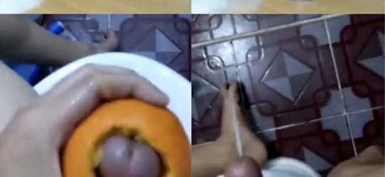 帅哥用橘子打孔做嫩逼 喷射的好远啊