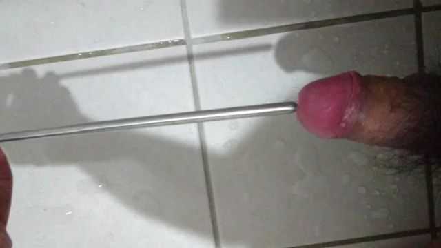 肉丝伪娘玩金属马眼棒,瘙痒插尿道喷精马眼棒被顶出