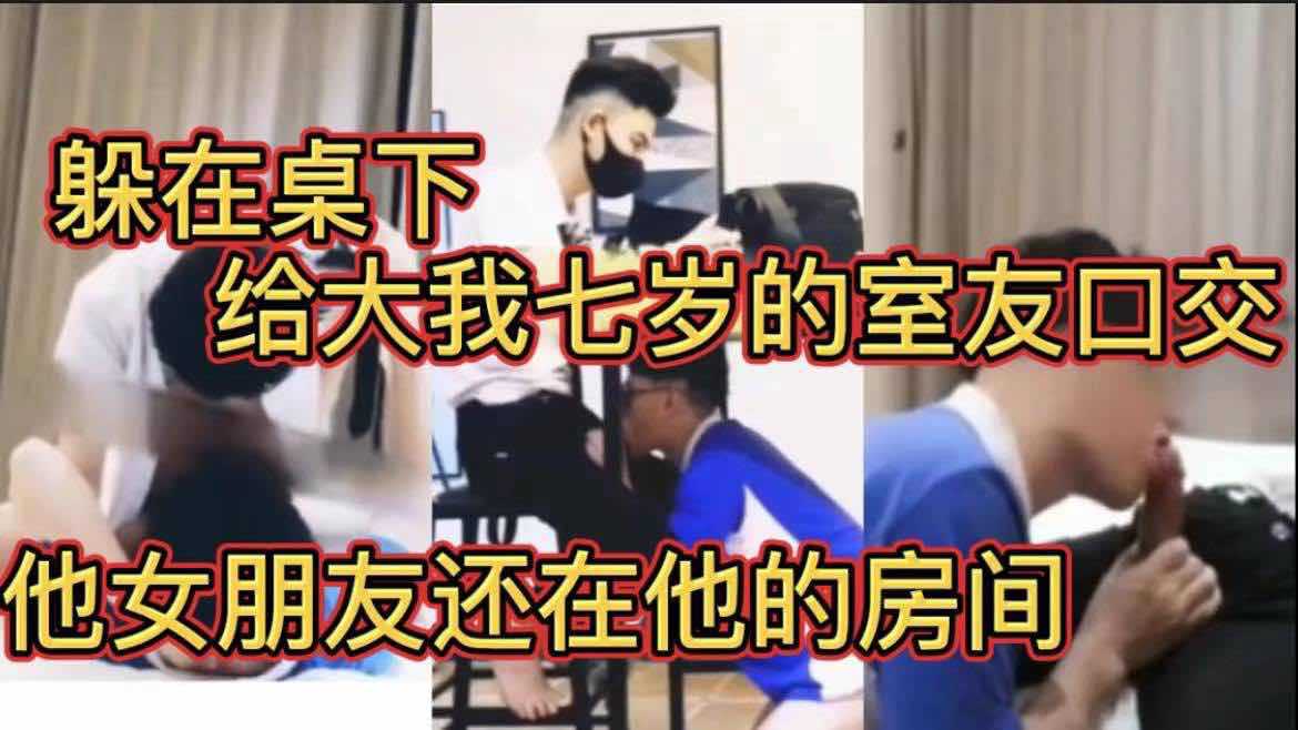 躲在桌下 给大我七岁的室友口交 他女朋友还在他的房间