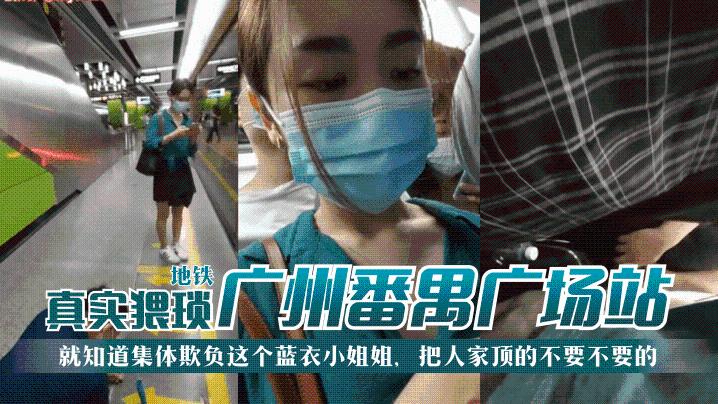 【地铁真实猥琐】广州番禺广场站就知道集体欺负这个蓝衣小姐姐把人家顶的不要不要的