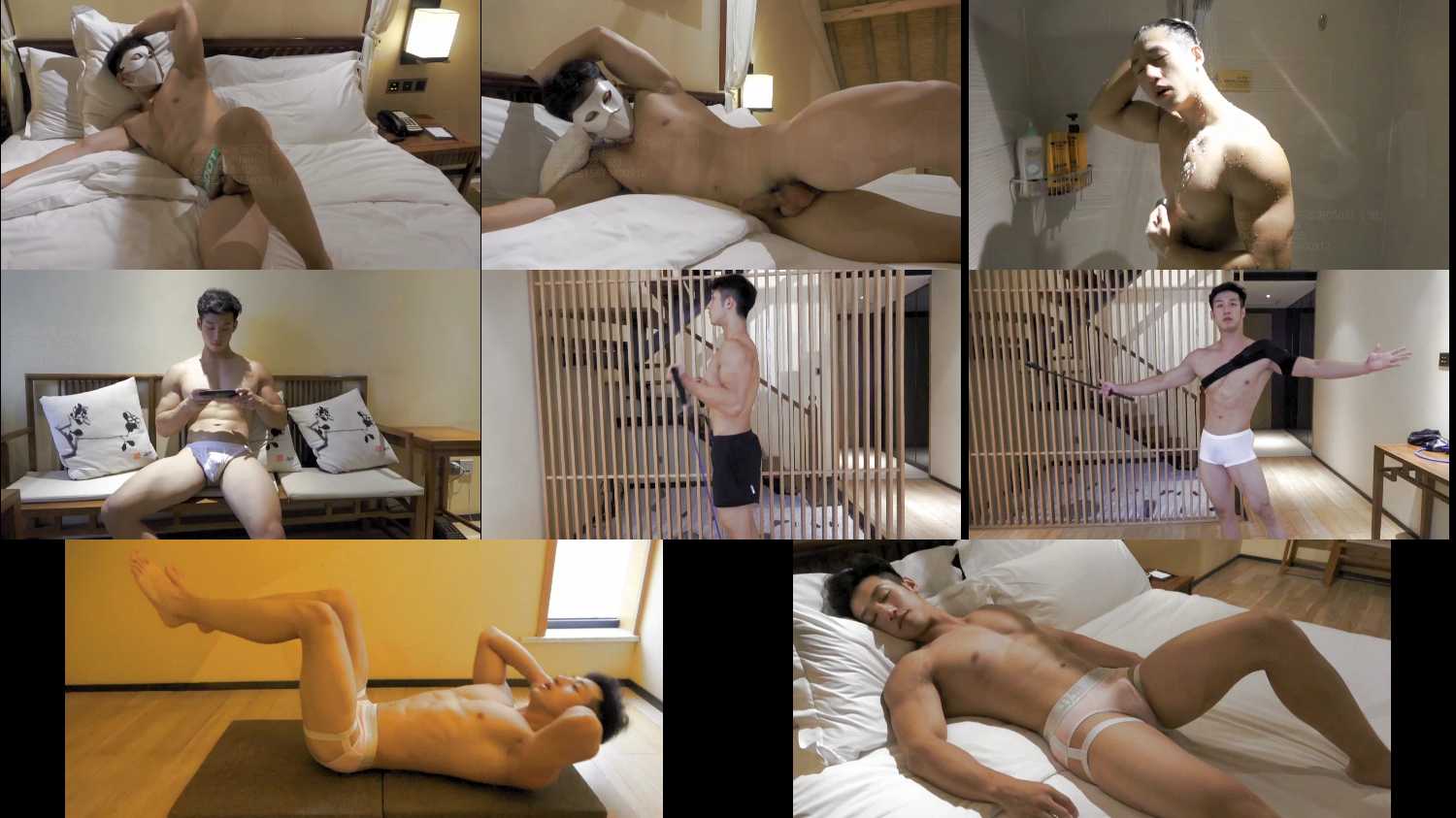 纹身肌肉型男自摸飞机