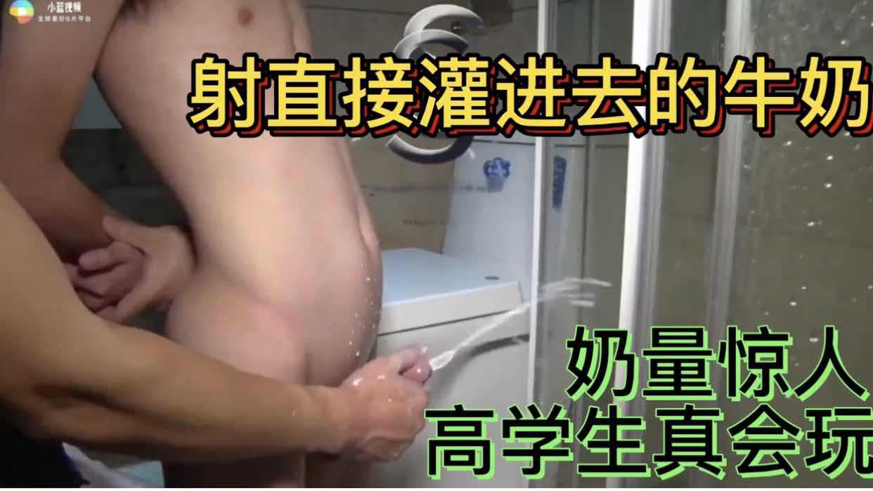 射之前灌进去的牛奶 高中生真会玩 奶量惊人
