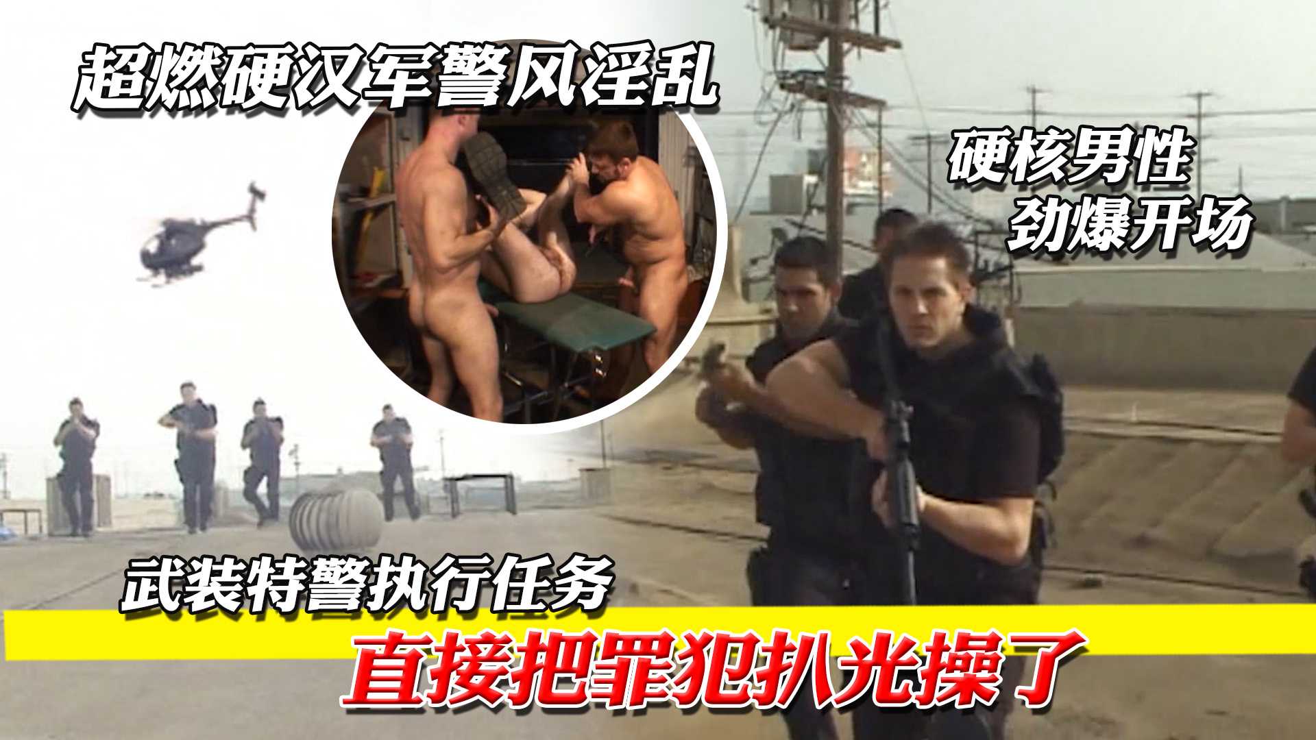 超燃硬汉军警风淫乱,武装特警执行任务,直接把罪犯扒光操了,硬核男性全裸开操