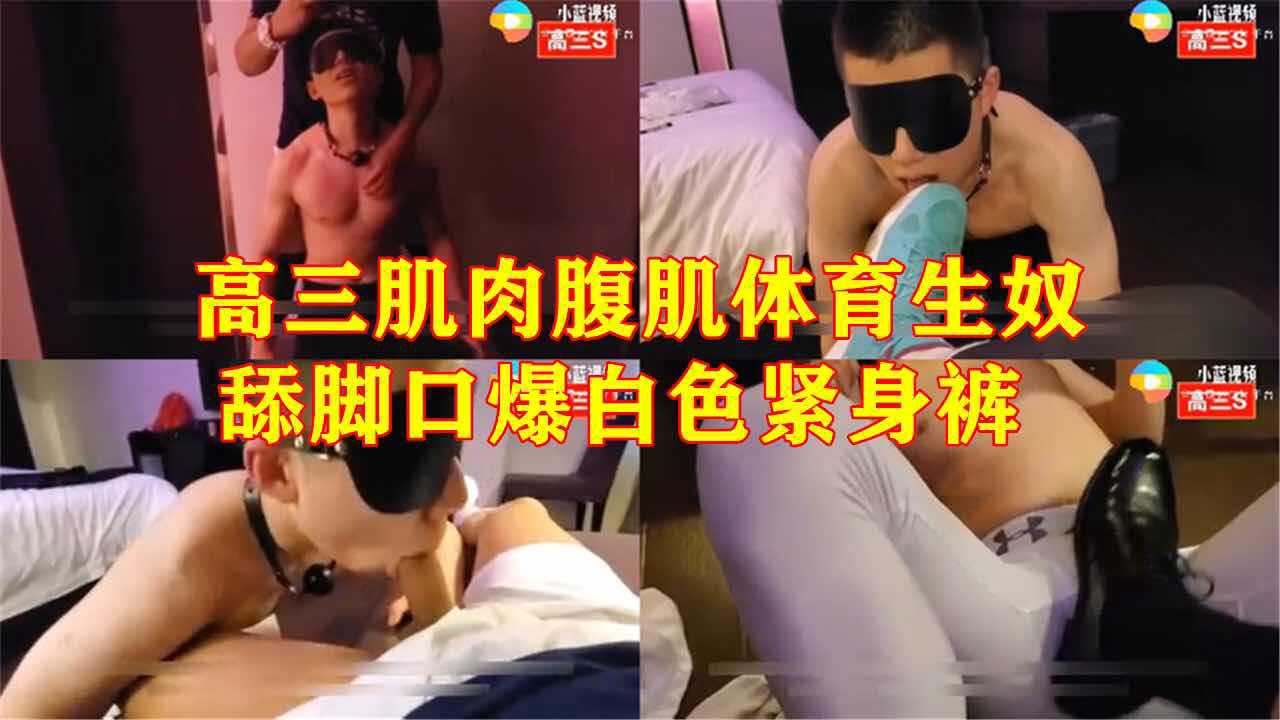 高三肌肉腹肌体育生奴,舔脚口爆,白色紧身裤SM