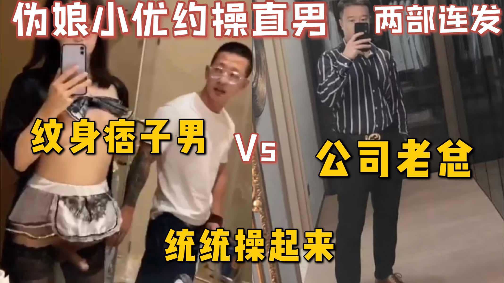 伪娘小优约操直男两部连发,纹身痞子男与公司老总,小优面前统统提屌来操