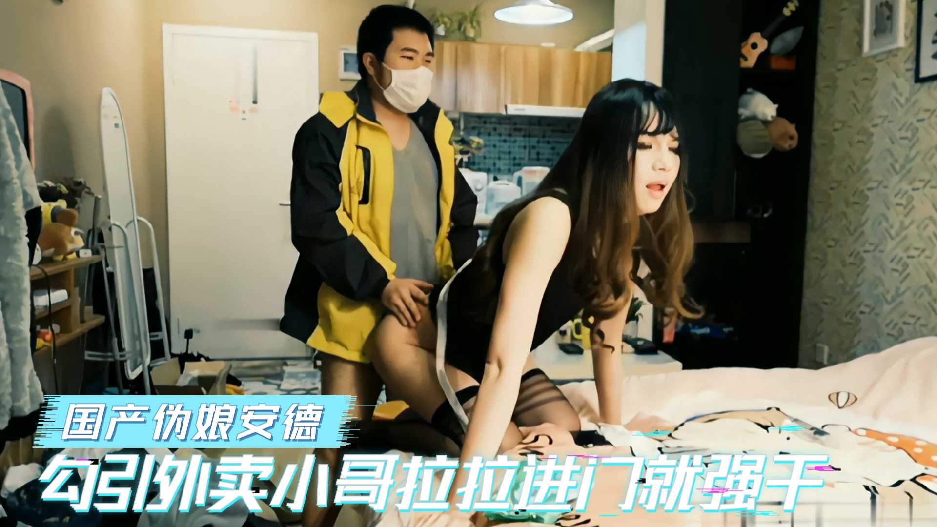 国产伪娘安德黑丝大长腿勾外卖小哥,门一拉就干进去,小哥鸡巴硬得受不了