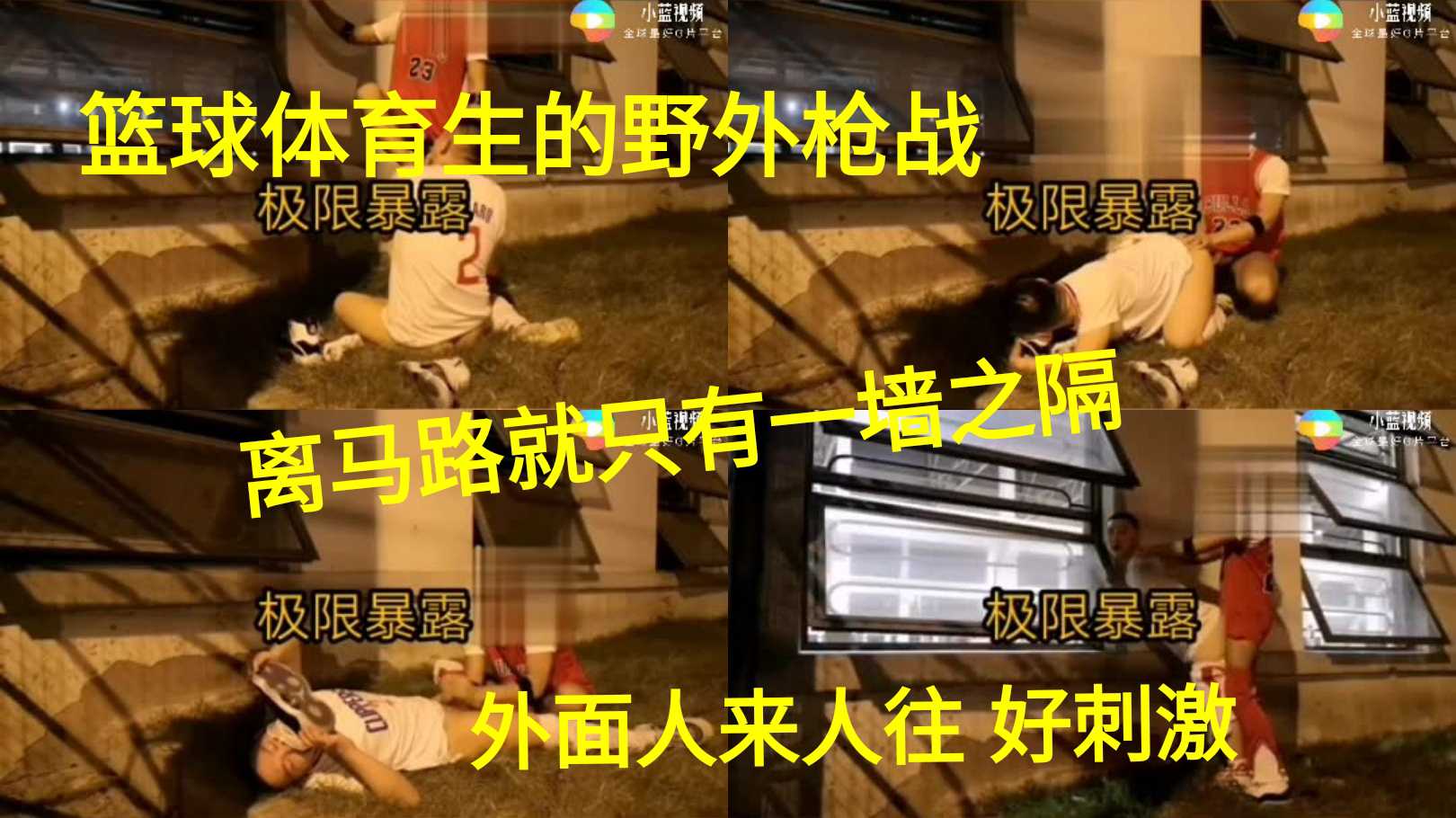 篮球体育生野外枪战 离马路只有一面墙 外面人来人往好刺激