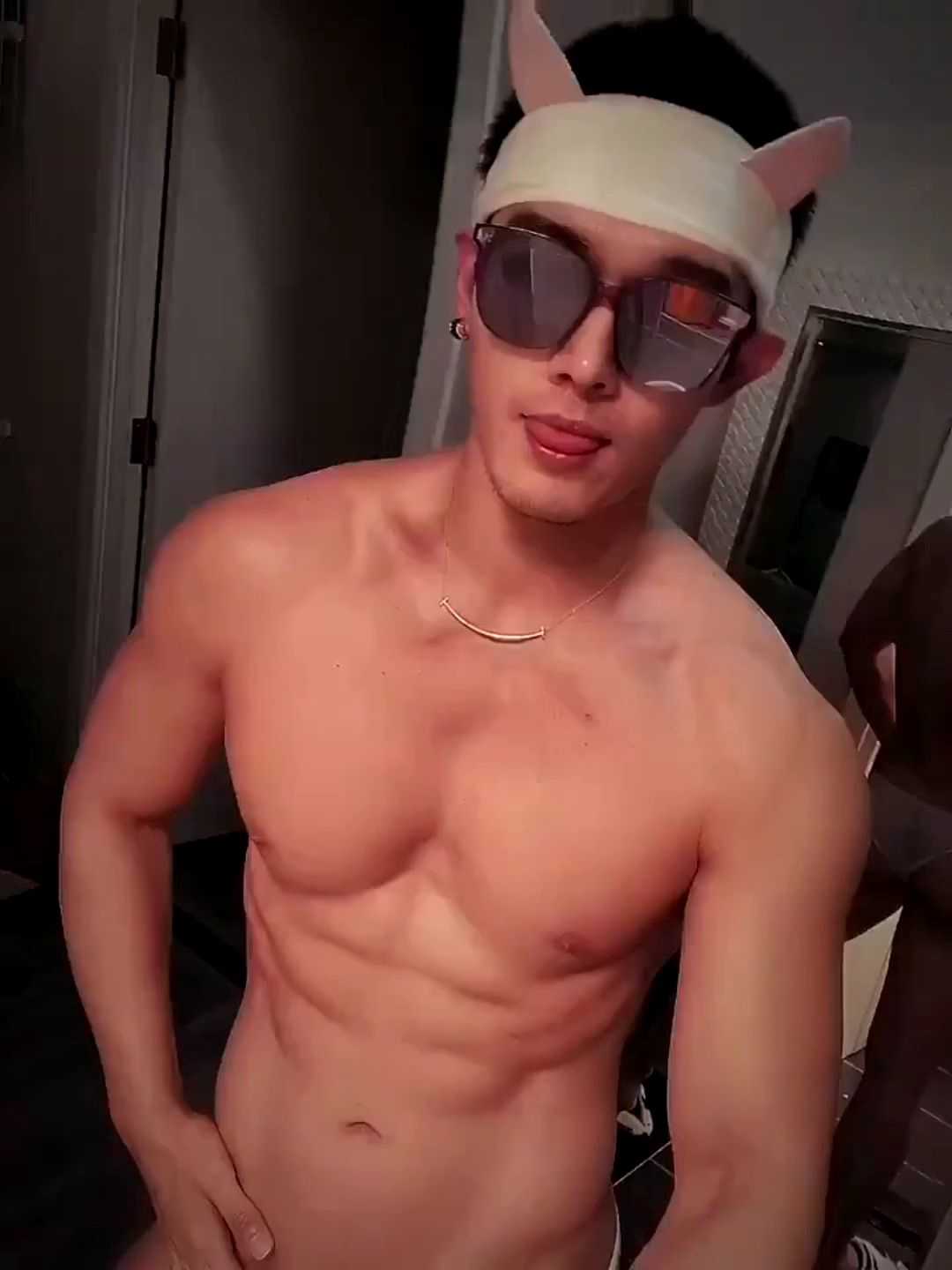 薄肌小零舔屌被操射 肌肉男主奴play