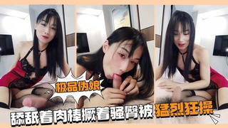 极品伪娘疯狂舔舐肉棒,撅着翘臀被勐烈狂操