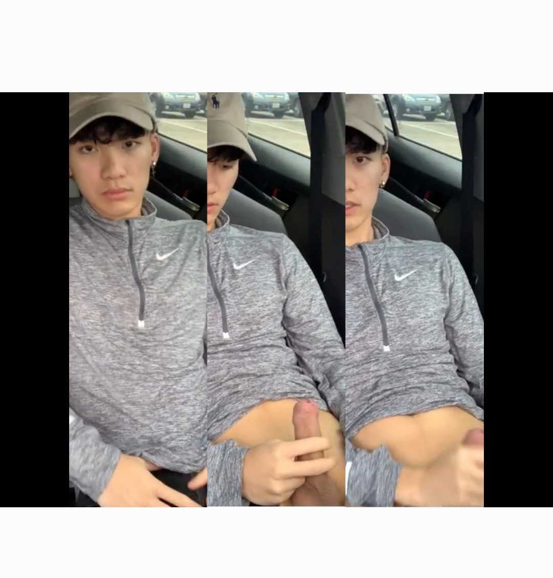 棒球帽天菜帅哥在车里视频打飞机,还能看到窗外走路的人,帅哥说的话听不太懂