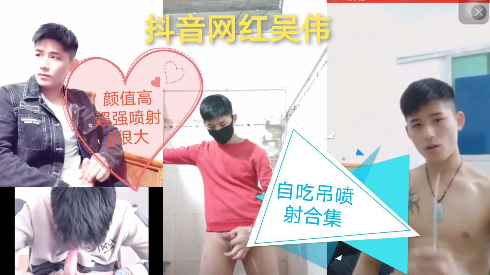抖音网红帅哥吴伟吃自己吊喷射合集,颜值高jj大超强喷射