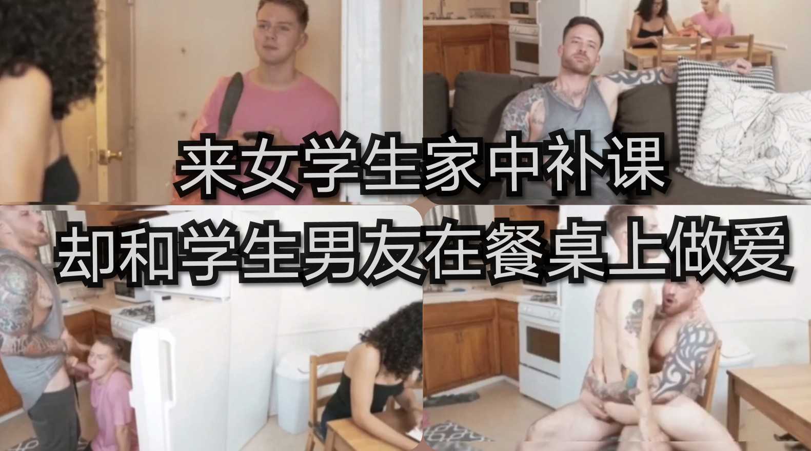来女学生家中补课,却和学生男友在餐桌上做爱