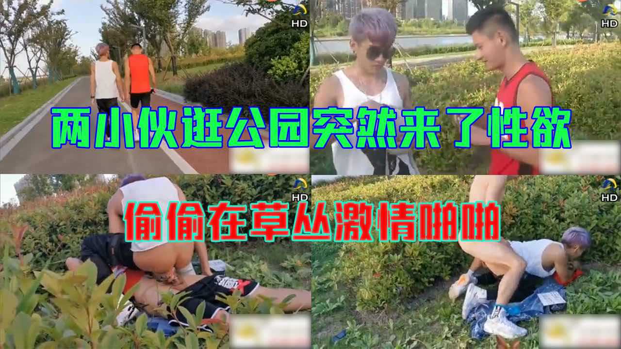 两小伙逛公园突然来了性欲,在路边草丛激情啪啪