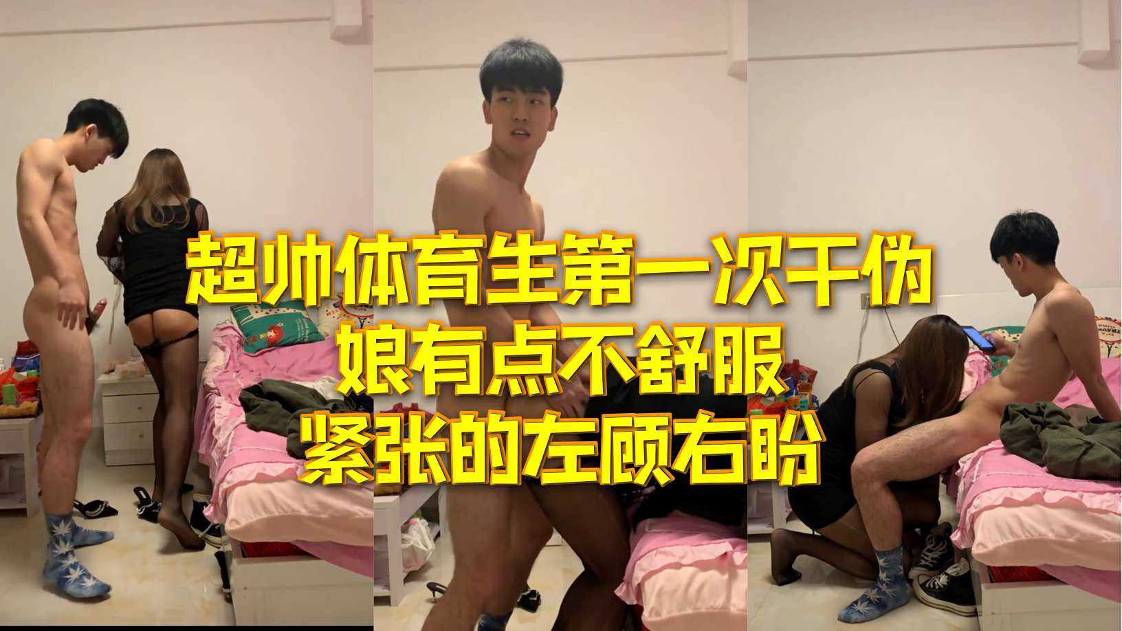 超帅体育生第一次干伪娘有点不舒服 紧张的左顾右盼