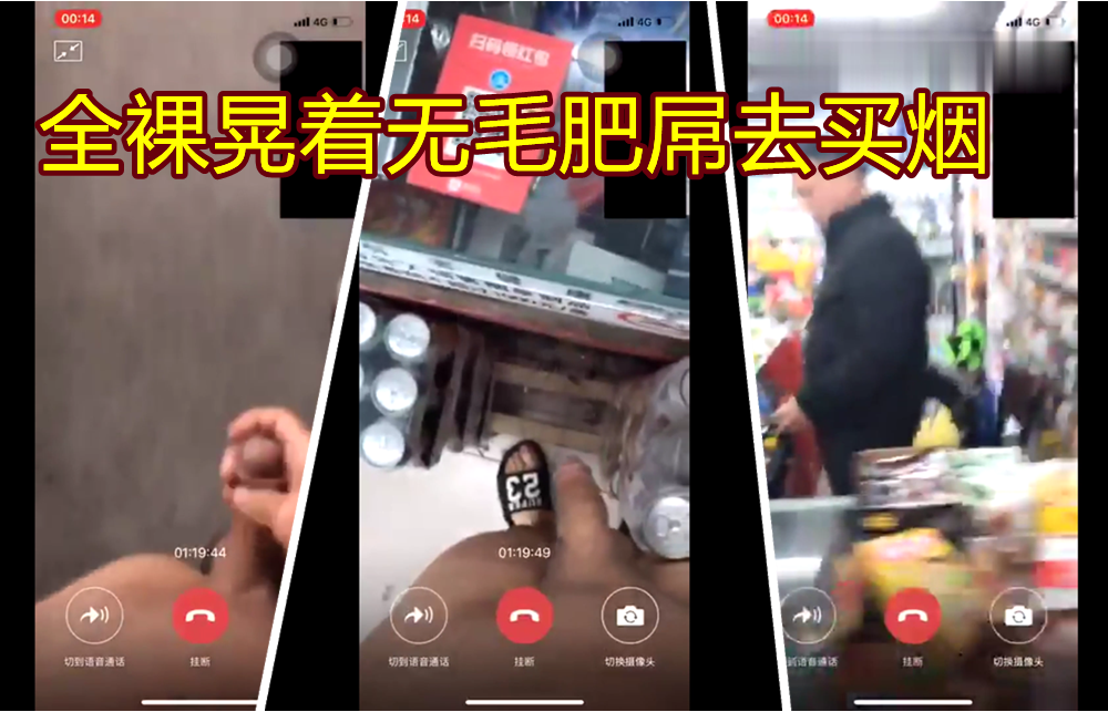 超屌牛人全裸晃着无毛肥屌去超市买烟,全程开着视频给朋友看