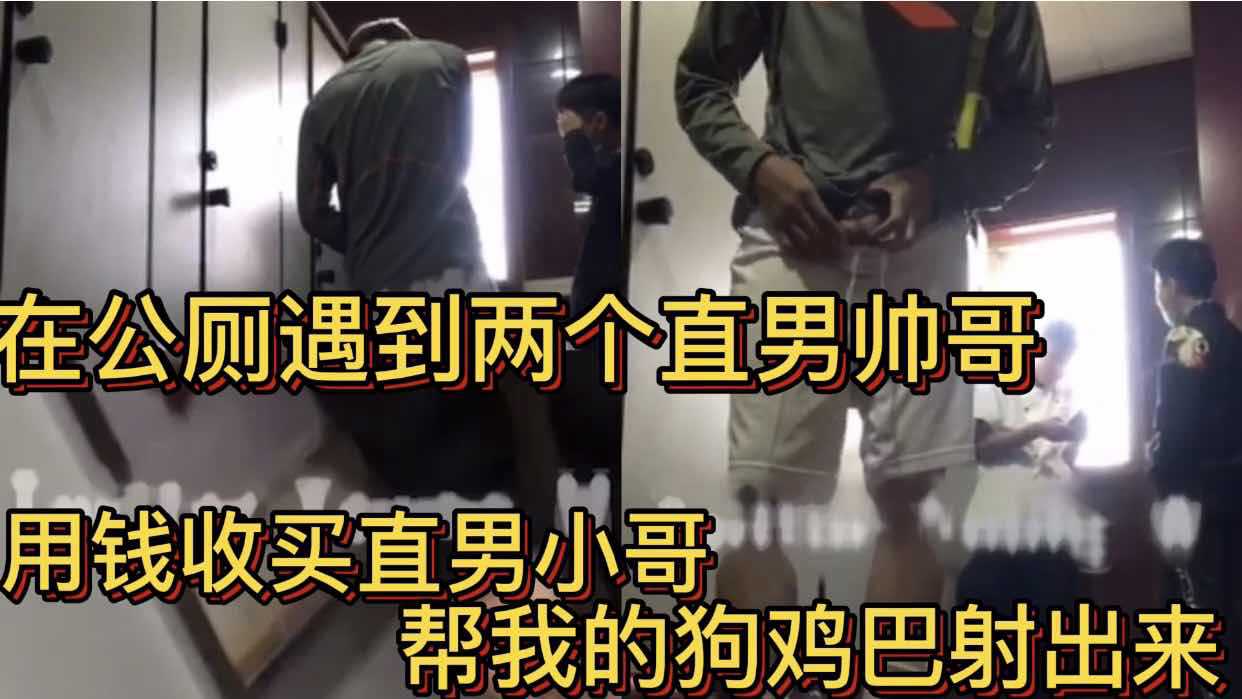 在公厕遇到两个直男帅哥 用钱收买直男小哥 帮我的狗鸡巴射出来