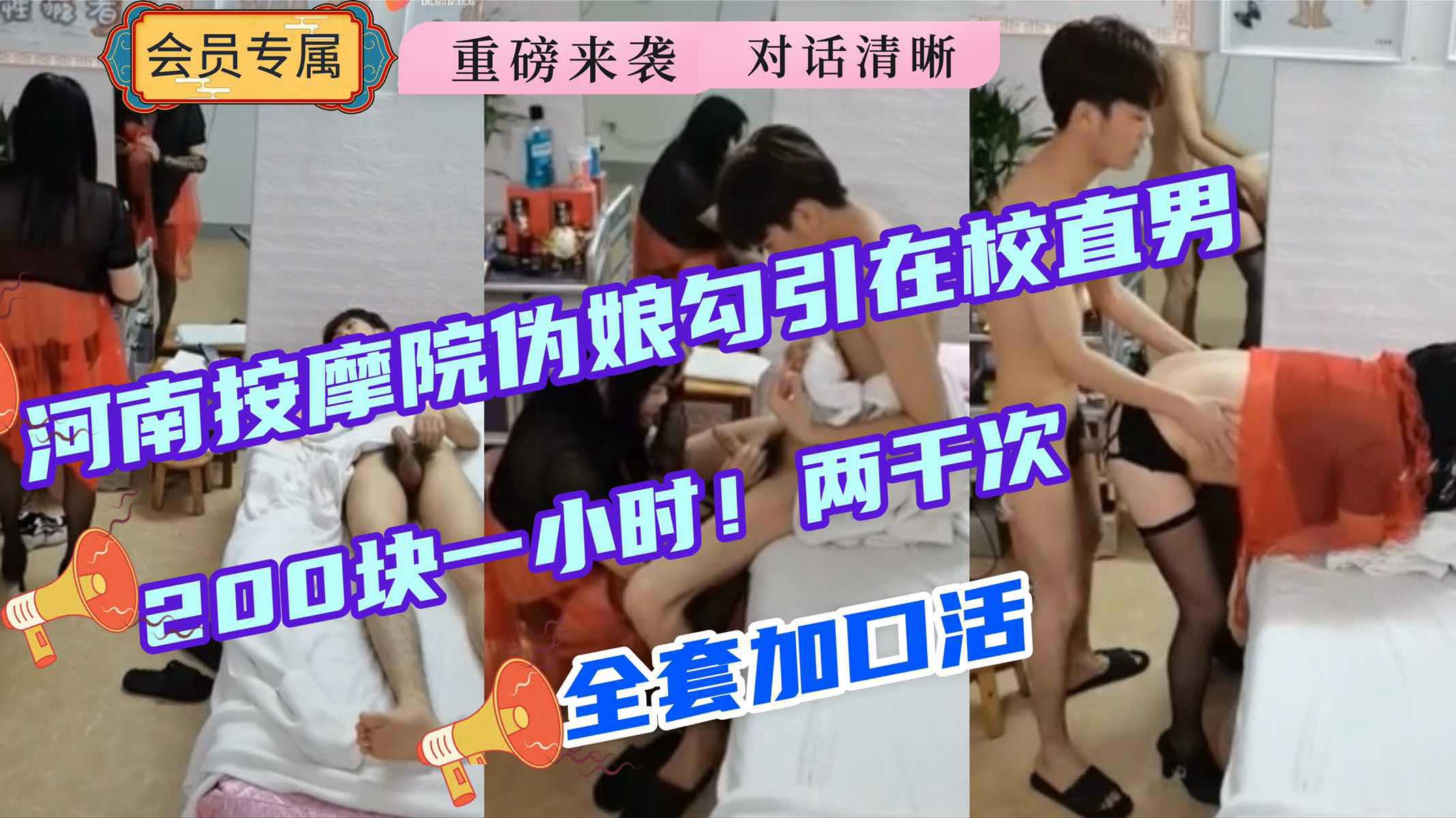 河南按摩院伪娘勾引在校直男,200块一小时操两次,全套加口活,对话清晰太骚了