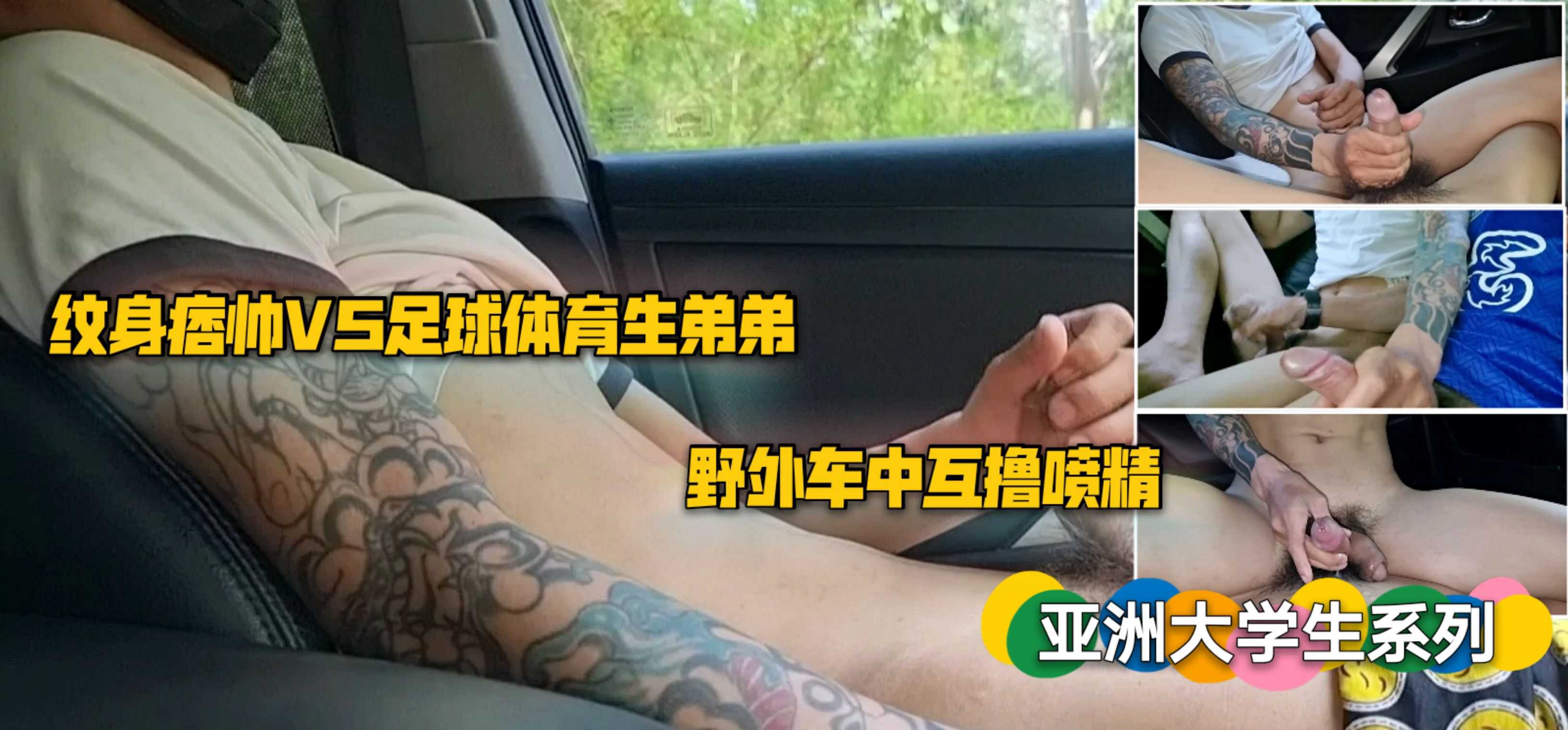 亚洲大学生系列 纹身痞帅VS足球体育生弟弟 野外车中互撸喷精