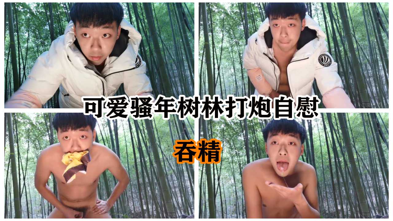 卡哇伊骚年树林间打炮自慰,最后吞自己的精液