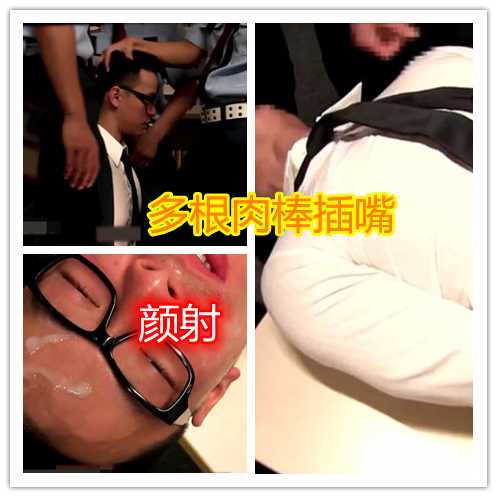 连载 西装男在图书馆被三名保安围攻,多根肉棒插嘴,最后被颜射 中集