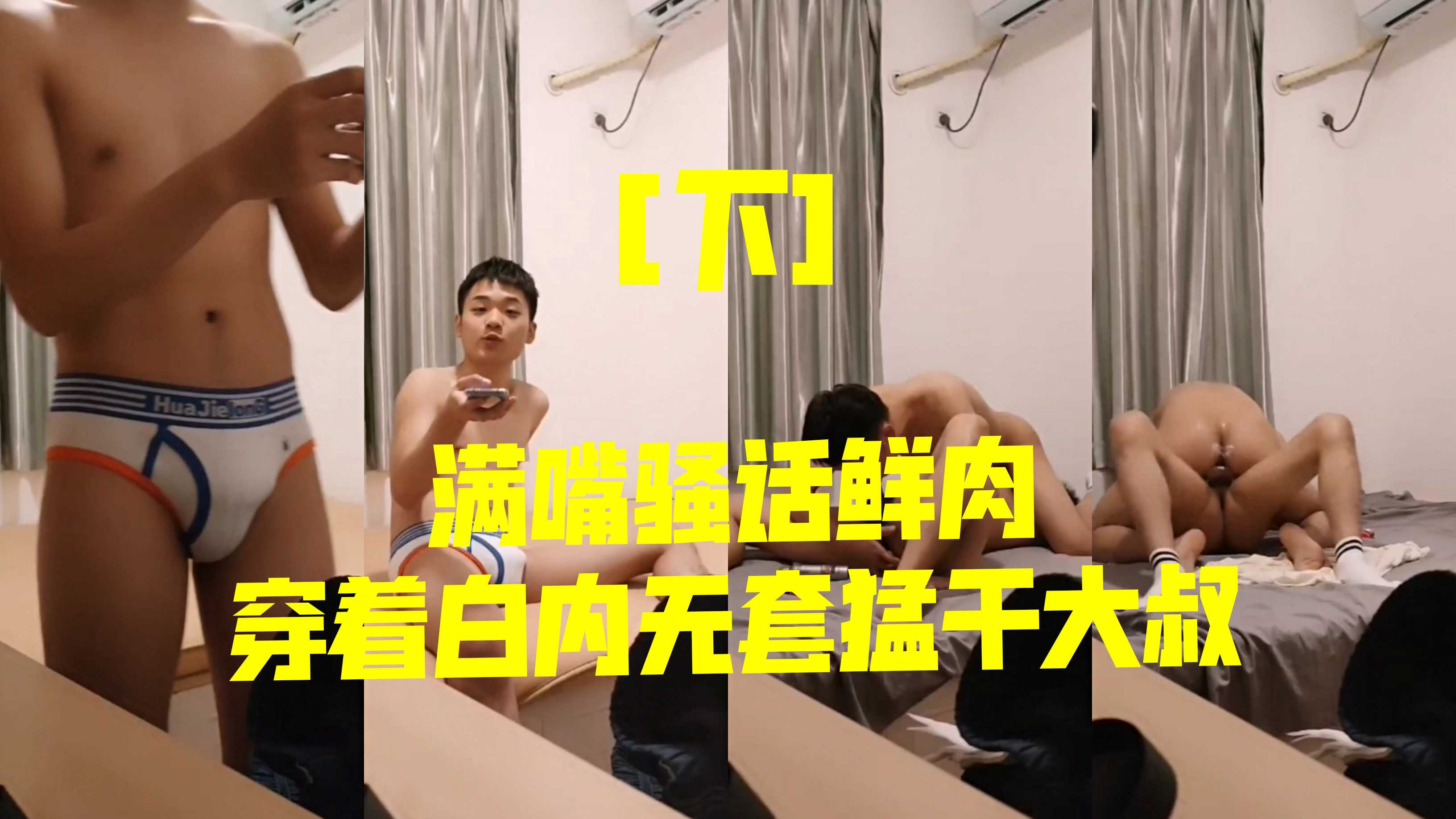 3/3满嘴骚话鲜肉穿着白内裤无套猛插大叔!