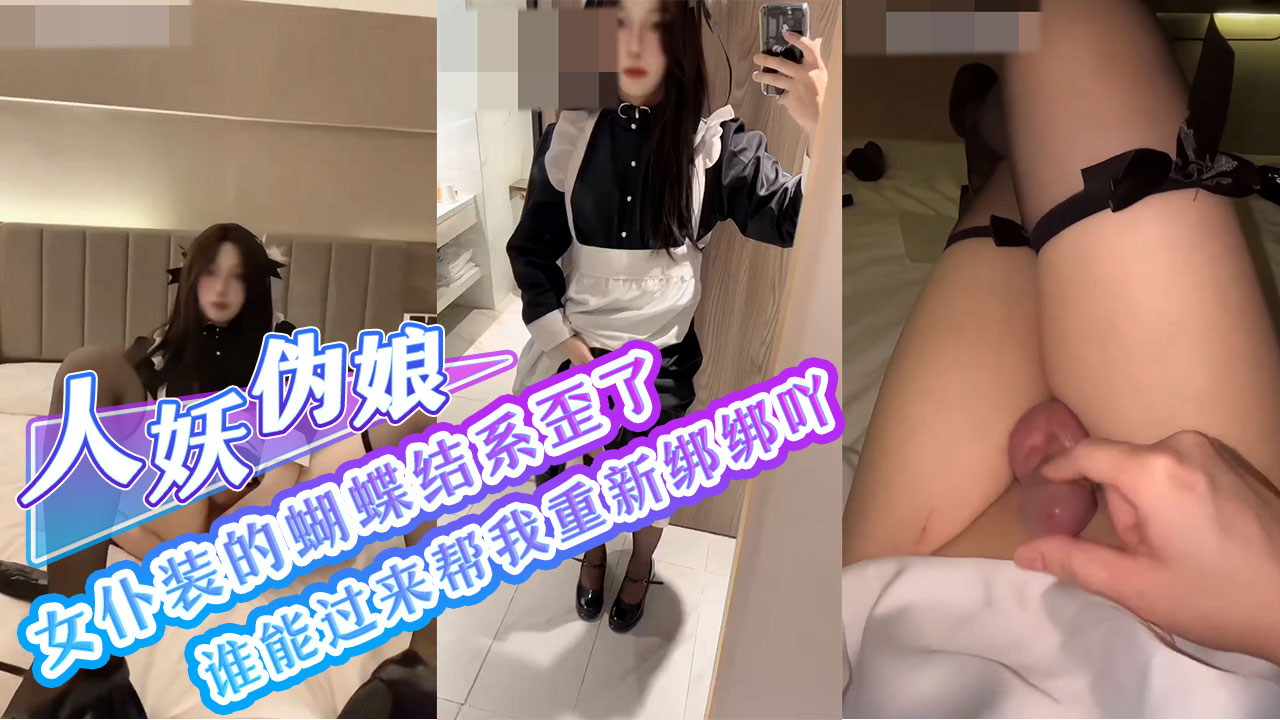 女仆装伪娘蝴蝶结系歪了,谁快来帮我重新绑绑呀 绑好就扒开裙子直接干我