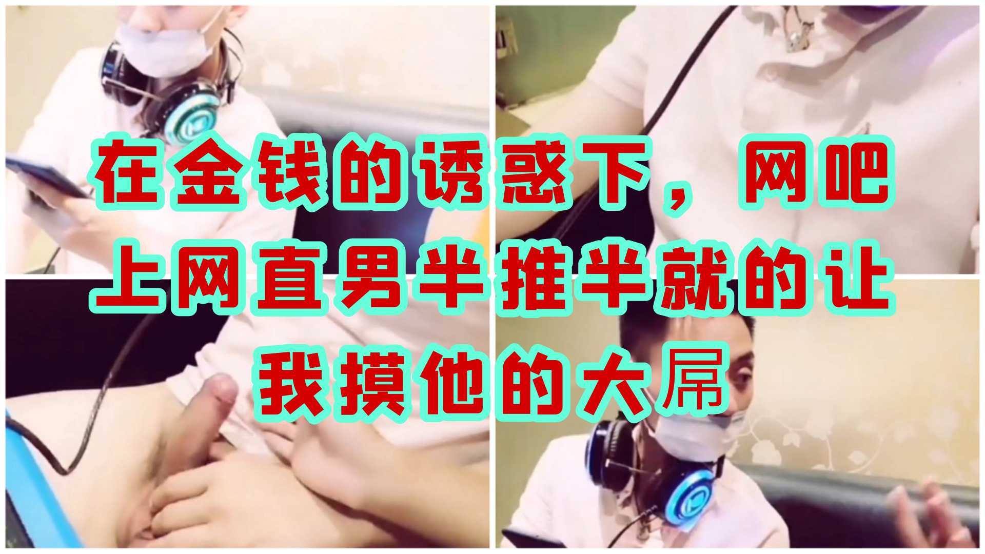 在金钱的诱惑下,网吧上网直男半推半就让我摸了他的屌