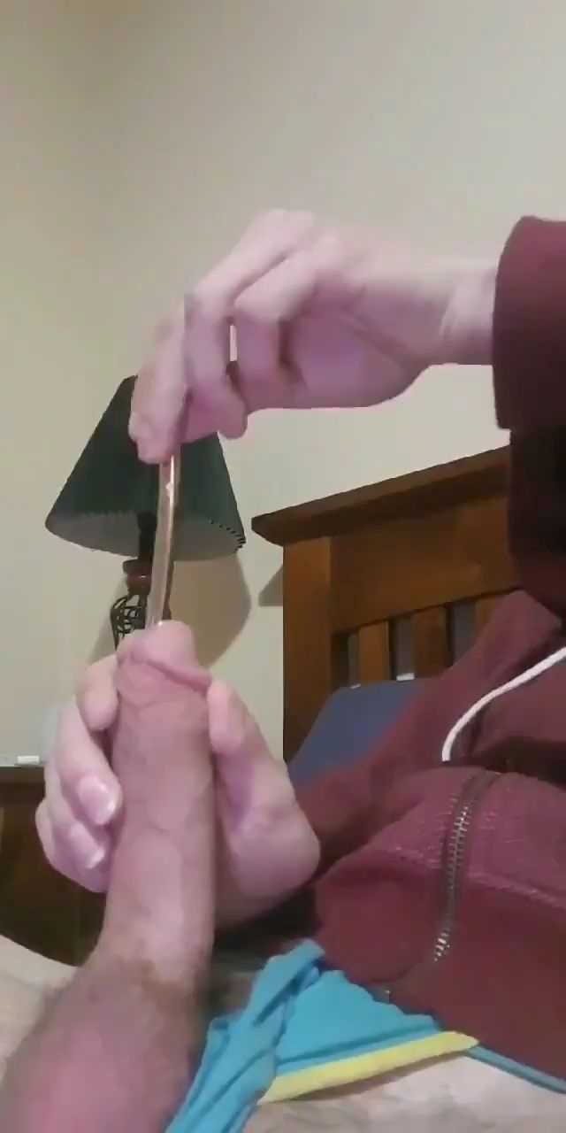 肉丝伪娘玩金属马眼棒,瘙痒插尿道喷精马眼棒被顶出