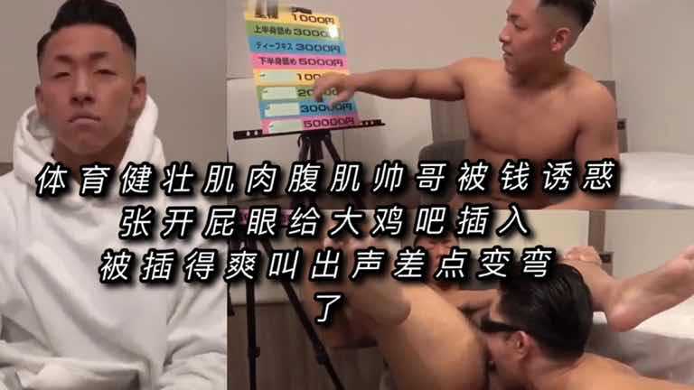 体育健壮肌肉腹肌帅哥被钱诱惑 张开屁眼给大鸡吧插入 被插得爽叫出声差点变弯(上)