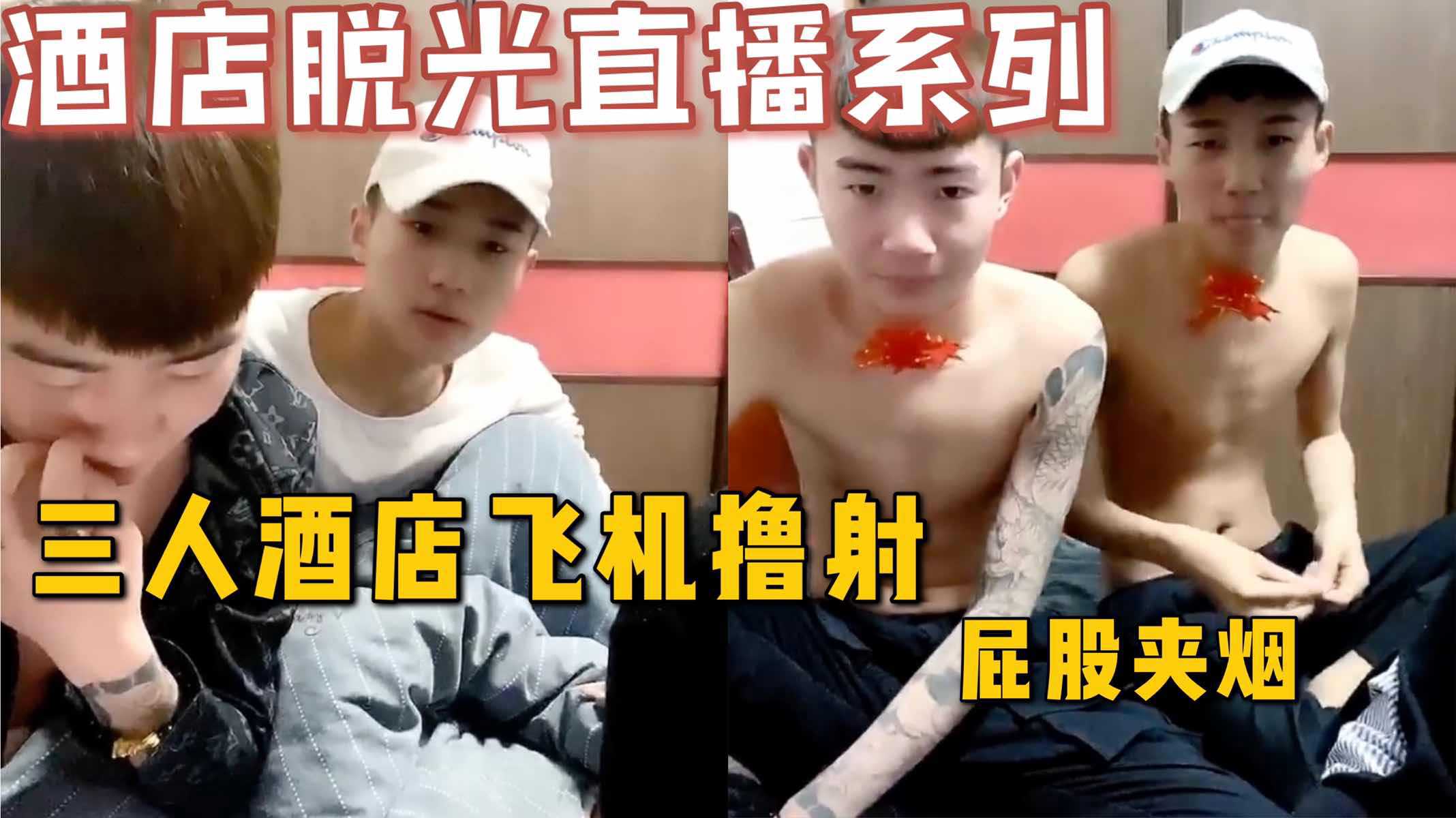 【每日福利】酒店脱光直播系列,三人相约酒店脱光飞机撸射,屁股夹烟可真会玩