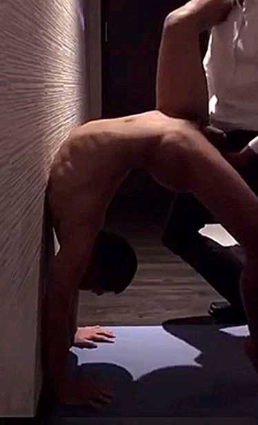 高难度性爱姿势,下腰后入爆菊花,被顶在墙上操