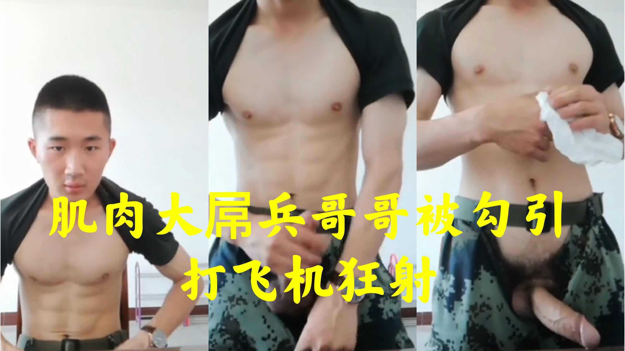 肌肉大屌兵哥哥被勾引打飞机,狂射!
