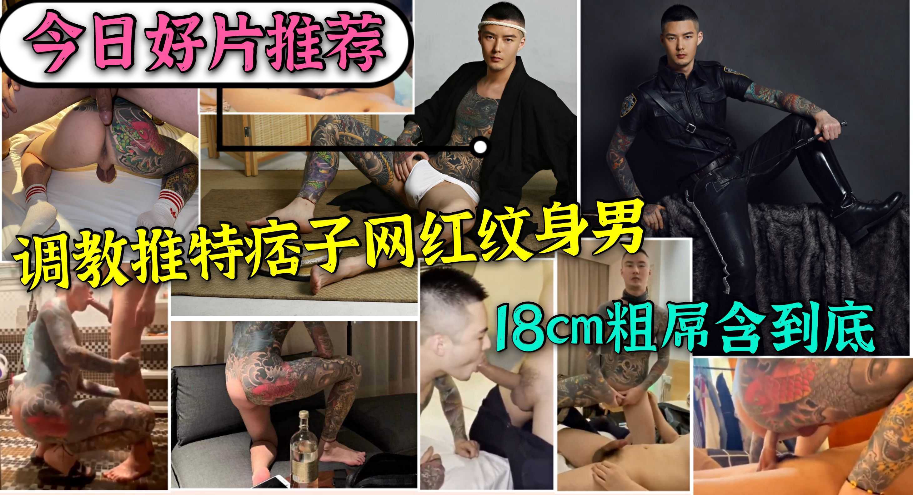最屌痞子纹身男也是推特网红,被大屌猛攻调教,大粗屌被骚逼全吞了