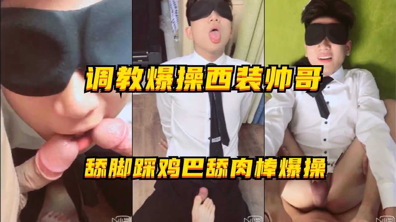 调教爆操西装帅哥,舔脚踩鸡巴舔肉棒,最后无套爆操内射