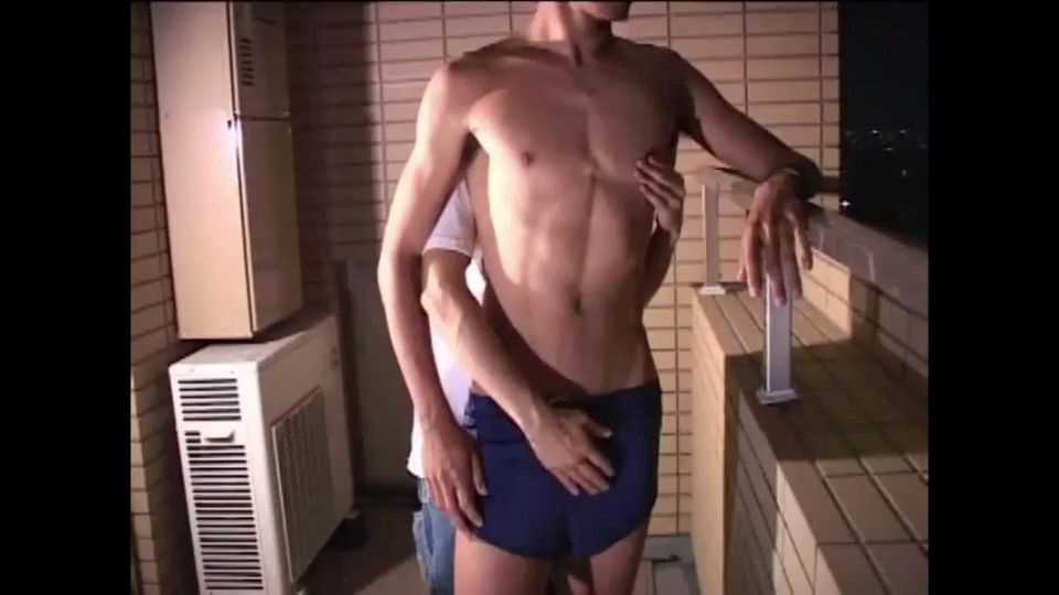 在阳台上调情,此时此地此景,身材很好的肌肉男甘愿被摸