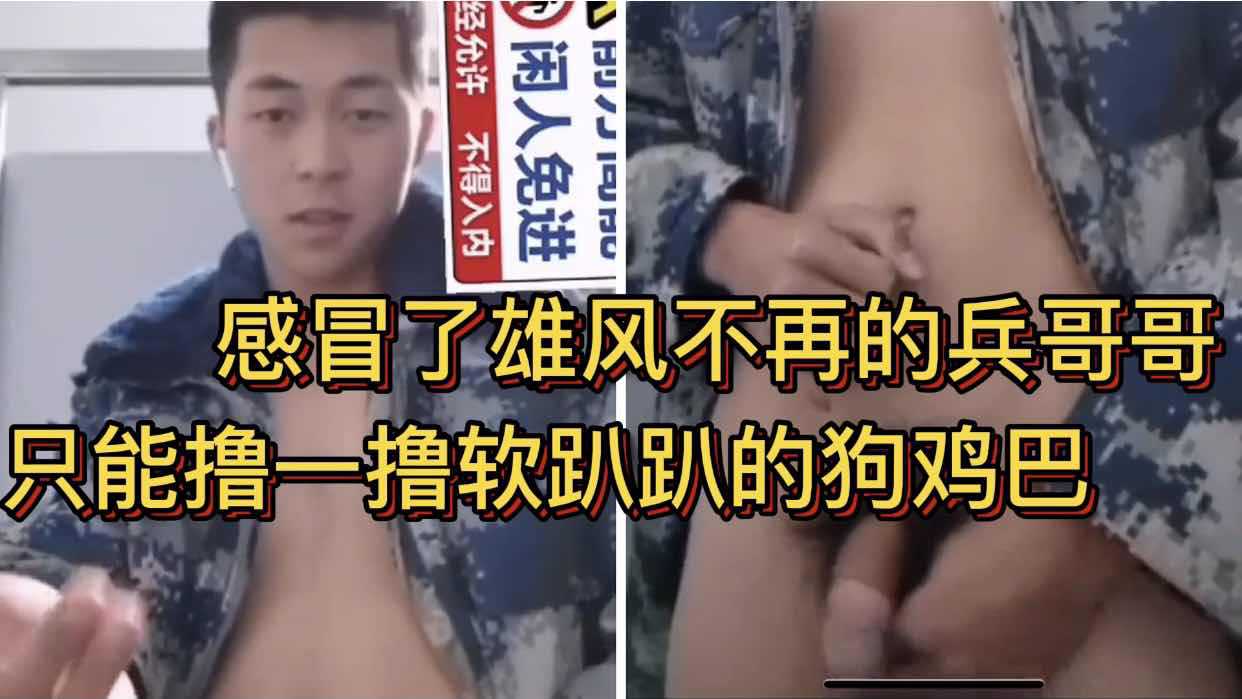 感冒了雄风不再的兵哥哥 只能撸一撸软趴趴的狗鸡巴