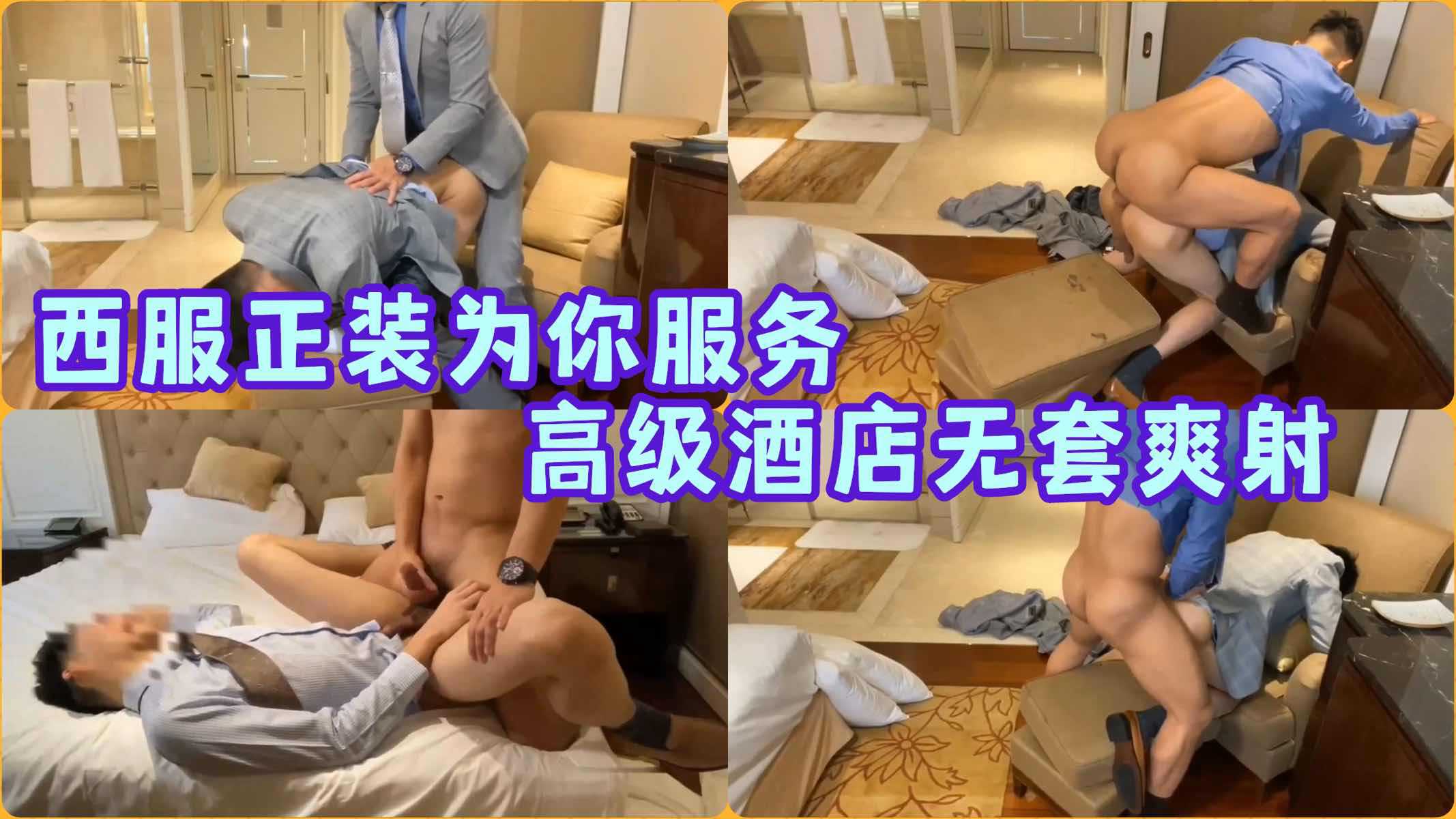 西装革履服务生在高级酒店伺候你,无套猛干到爽射,射完还用舌头帮你清理干净