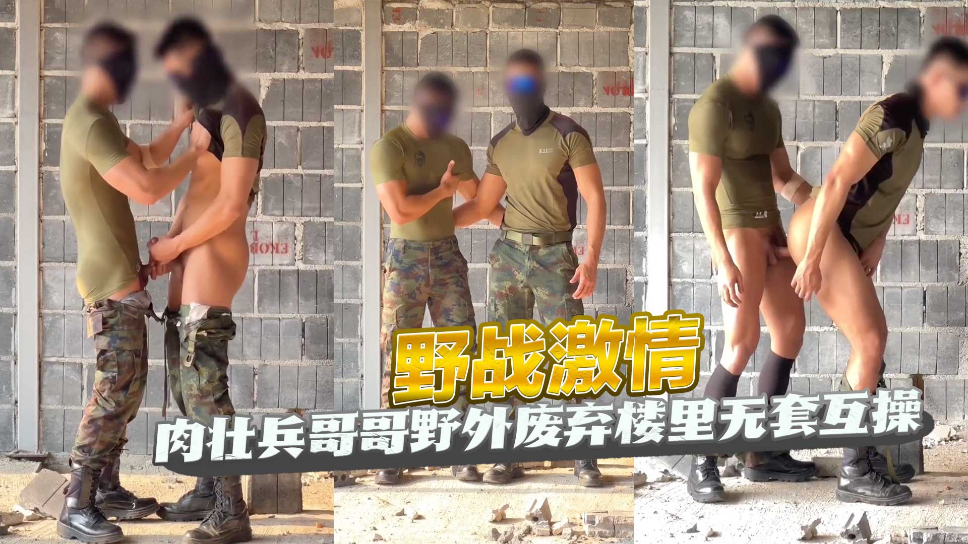 肉壮兵哥哥野外废弃楼无套互操,野战激情干到腿软,后入打飞机全套来一遍