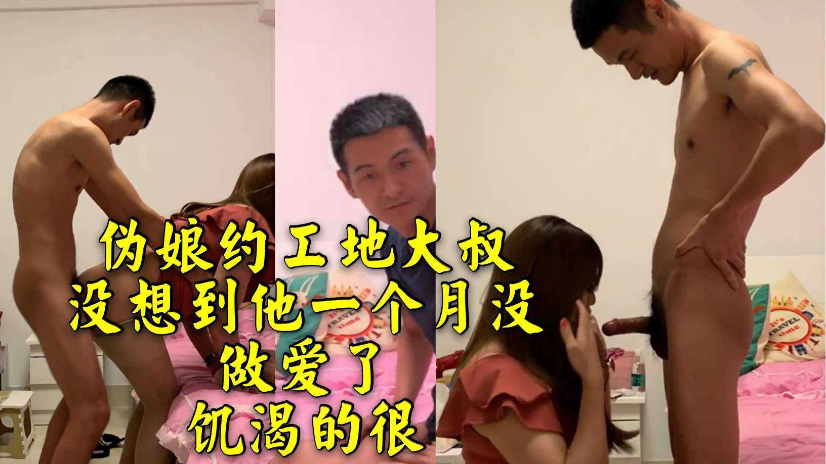 伪娘约工地大叔 没想到他一个月没做爱了 饥渴的很