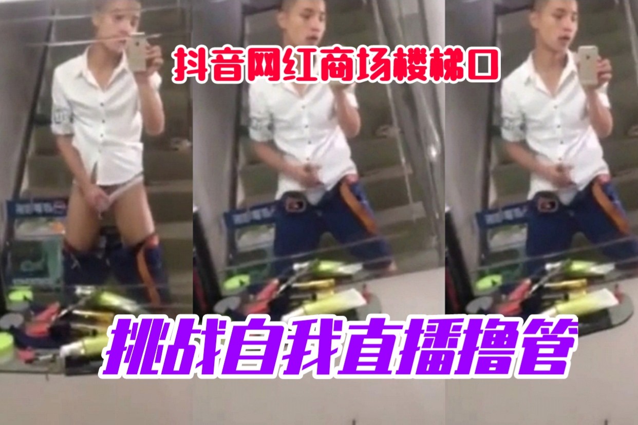 抖音网红商场楼梯口,挑战自我直播撸管